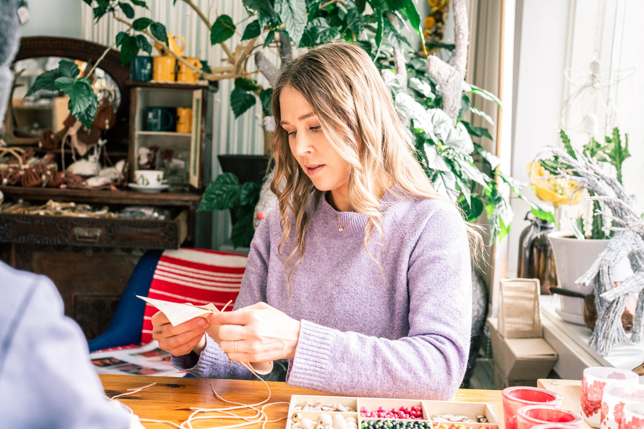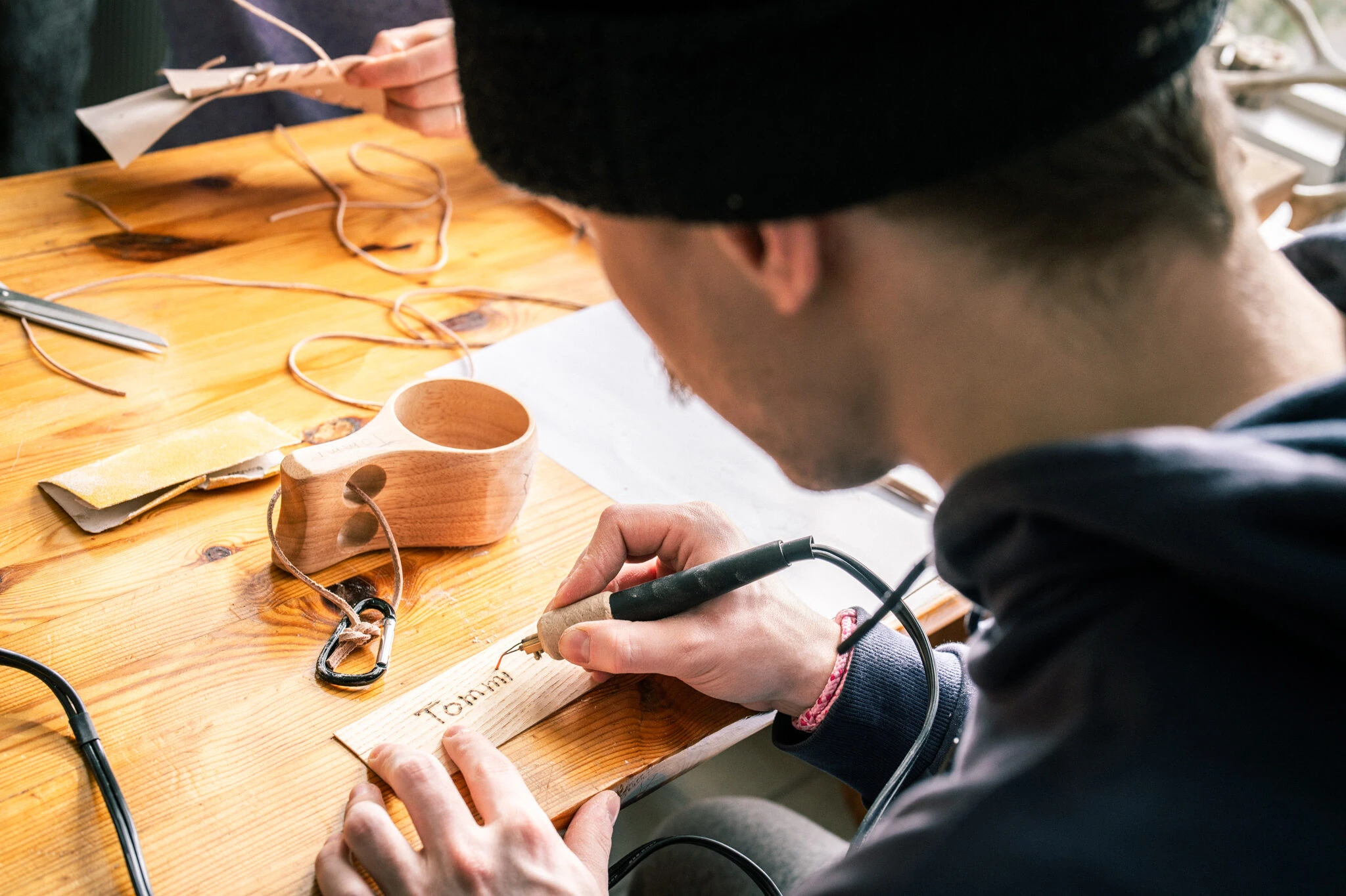 Varaa paikkasi käsityöpajaan, jossa valmistetaan paikallisista materiaaleista, kuten poronnahasta ja -sarvesta, oma matkamuisto käsityöohjaajan opastuksella.